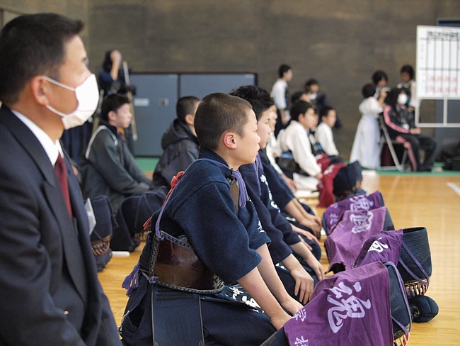 部員数少なく、混成チームで団体戦出場した新野中学男子剣道部員と監督