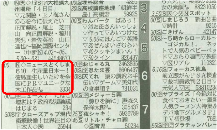 本日、NHKテレビ ニュースとくしま610