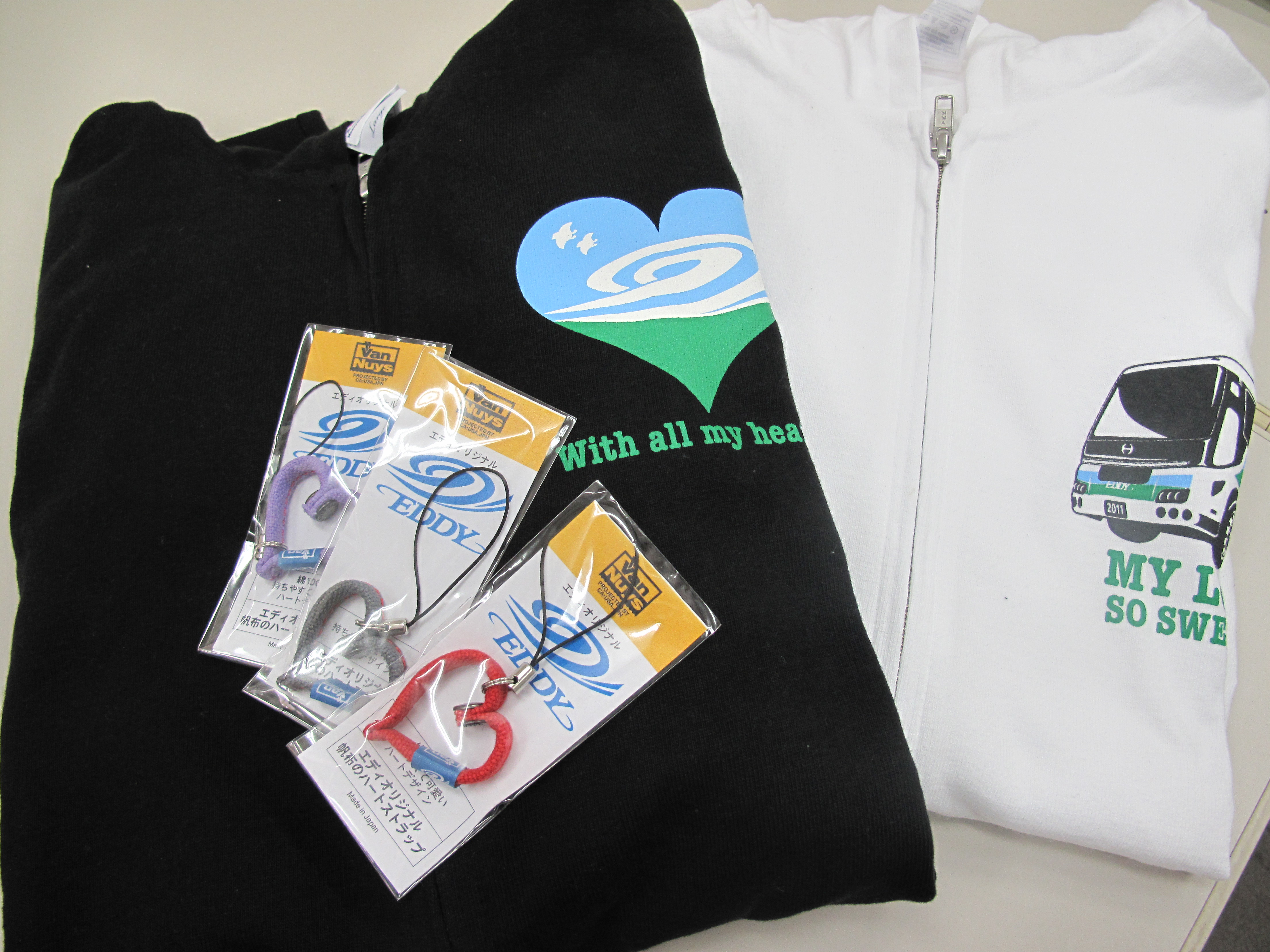 EDDYのパーカ(現在非売品だそうです)とバンナイズさんのストラップでした♪